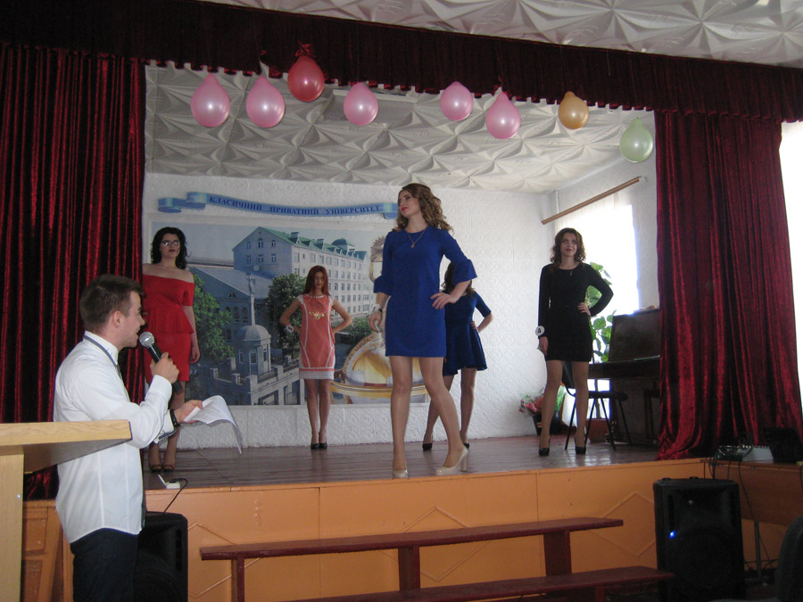 Захоплюючим був конкурс «Дефіле у вечірніх сукнях», яким і завершився захід. Дівчата у чудових вечірніх сукнях були вишукані, красиві, феєричні. Ця неповторна мить святкового дійства наповнювала душі глядачів світлом, радістю та любов’ю, адже краса завжди викликає приємні емоції.