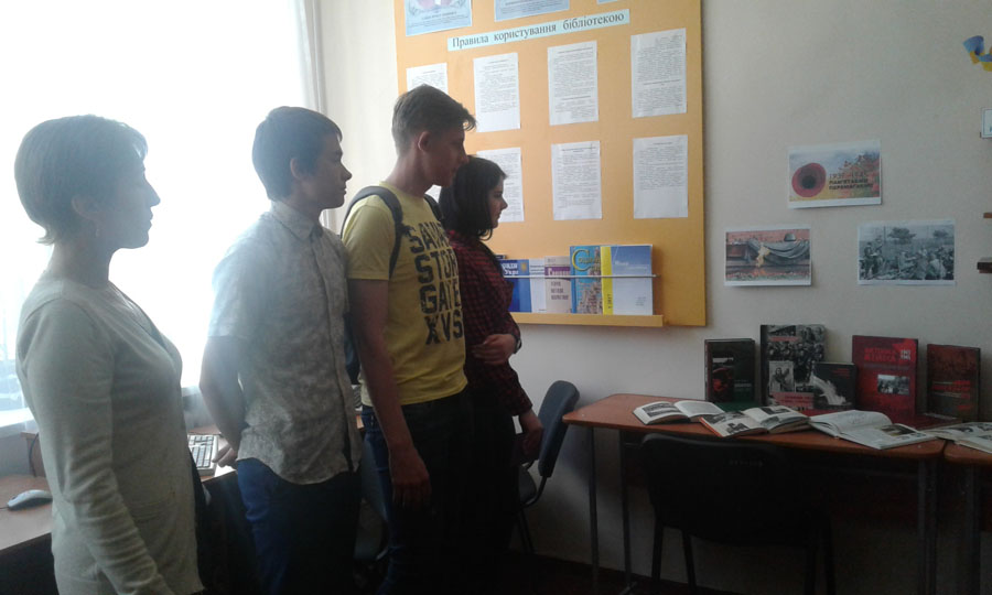 А сьогодні, 5 травня 2017 року, в актовій залі інституту зібралися студенти, до яких завітали працівники Кіровоградської обласної бібліотеки для юнацтва. Гості підготували для молоді історичний екскурс «Перемога в серцях поколінь». Під час заходу демонструвалися фотослайди воєнних років, звучали пісні та вірші на військову тематику, які викликали у присутніх почуття патріотизму, гордості, суму та тривоги.